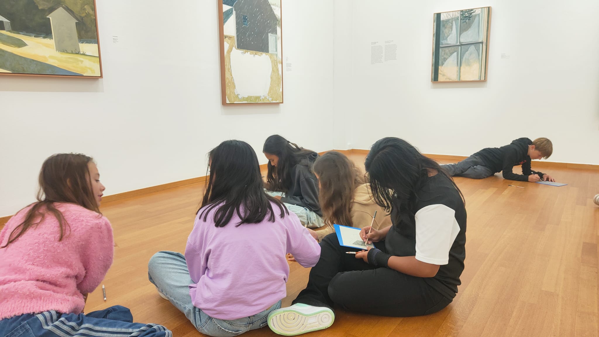 Wij hebben uiterst charmante buren. We gaan dan ook regelmatig bij ze op bezoek. De afgelopen weken was het de beurt aan klas 1 om in kleine groepen rondgeleid te worden door het Kunstmuseum. Het thema was dit keer schilderkunst. Twee vrouwen stonden centraal. De Amerikaanse Lois Dodd en de Haagse Van Heemskerck. Onze leerlingen leerden niet alleen kijken, maar gingen zelf ook aan het werk met het schrijven van een gedicht, geïnspireerd op een vurig werk van Dodd, en het natekenen van een wild doek van Van Heemskerck. Het waren inspirerende bezoeken. Met dank aan onze buren. We komen gauw weer.
